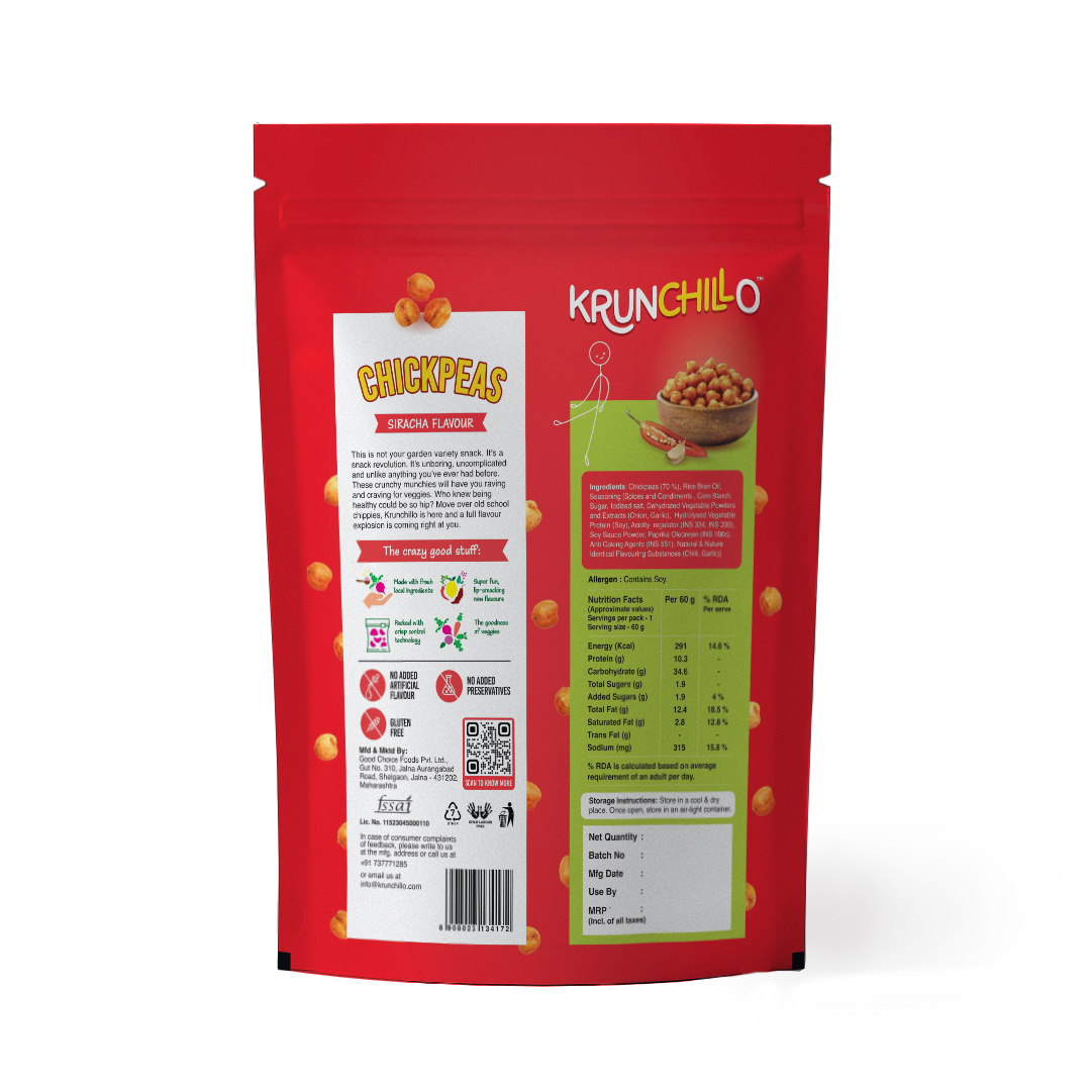 Turn up the heat with our Crispy Chickpeas in bold Sriracha Flavour. Packed with fiery zest and a satisfying crunch, these power-packed chickpeas are the ultimate snack to spice up your day. Nutritious, protein-rich, and irresistibly tasty—this is snacking redefined!